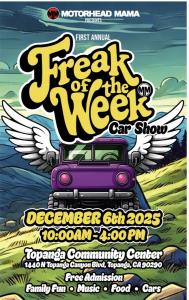 TOPANGA, CA, UNITED STATES, December 4, 2025 /EINPresswire.com/ -- Los Angeles’ newest, quirkiest, and most joy-filled automotive event is officially here. The First-Annual Freak of the Week Car Show, hosted by Topanga’s own Motorhead Mama, invites Angelenos to a free, open-to-the-public, family-friendly community celebration of the bold, bizarre, and totally unforgettable vehicles that define LA’s incomparable car culture.